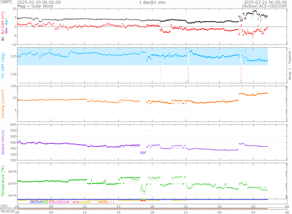 450km/s前後で推移していましたが徐々に下がり、一時380km/s前後まで下がりました。