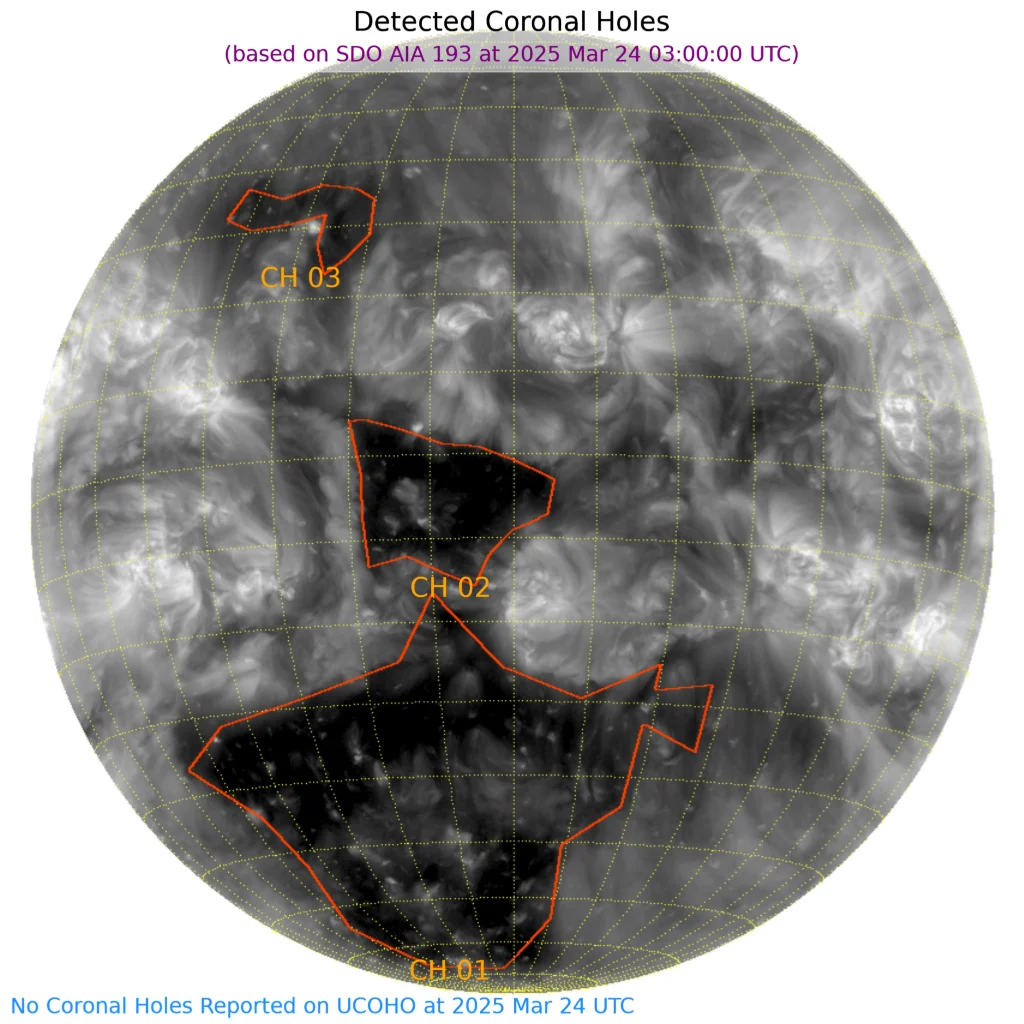 その他、赤道付近東寄り、北半球東側にもコロナホールもあります
