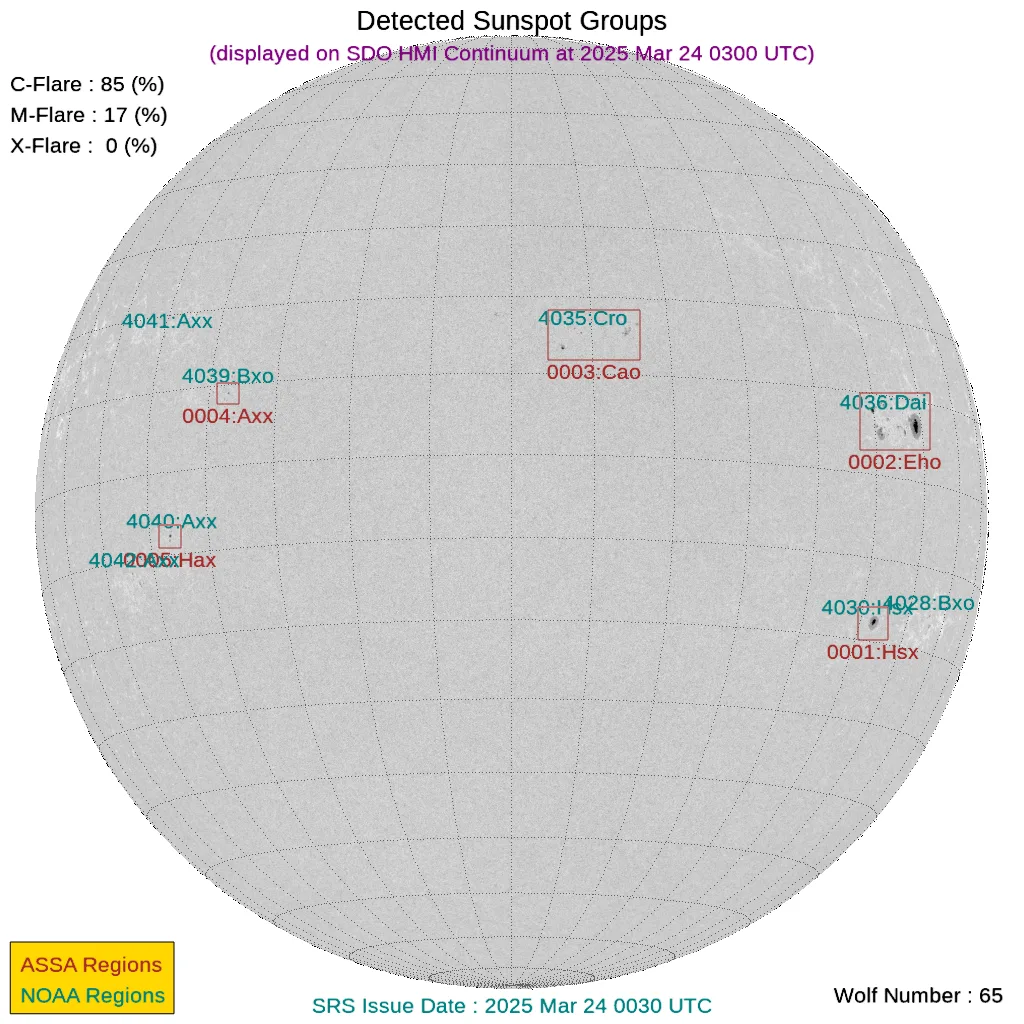 現時点で地球正面の黒点群は[4035]です。←黒点番号が振られていない活動領域でもフレアは発生しますので、あくまで目安として捉えてください。