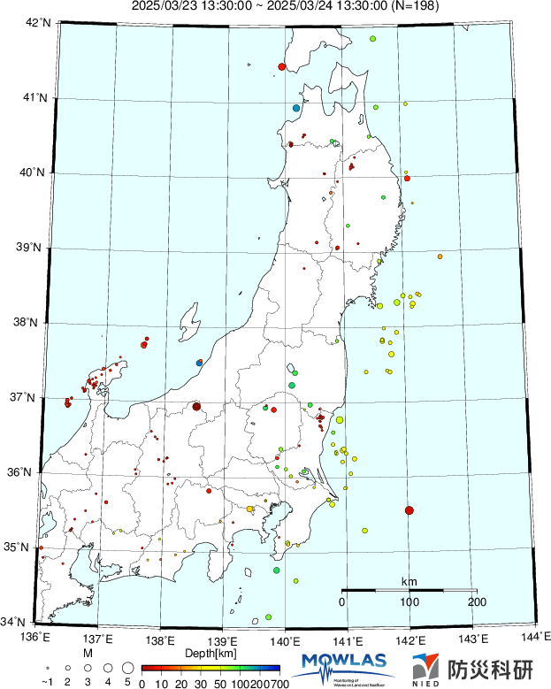 ●Hi-net日本地震分布と気象庁・・・hi-netの小笠原のデータは掲載日がずれて反映されるようです(翌々日に掲載)。掲載されないものもあるようなので気象庁の画像も付けます