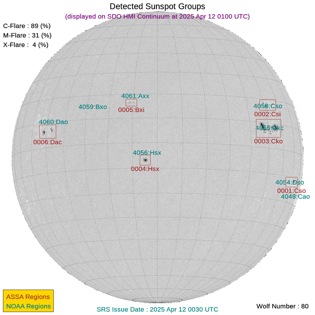 太陽フレアと黒点数(2025年04月12日更新)※中規模太陽フレア