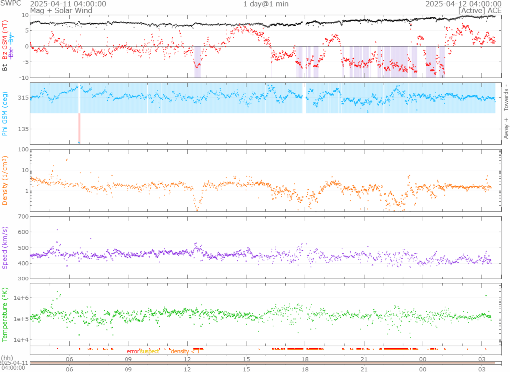 450km/s前後で推移していましたが、現在は420~450km/s前後で速度にバラつきがあります