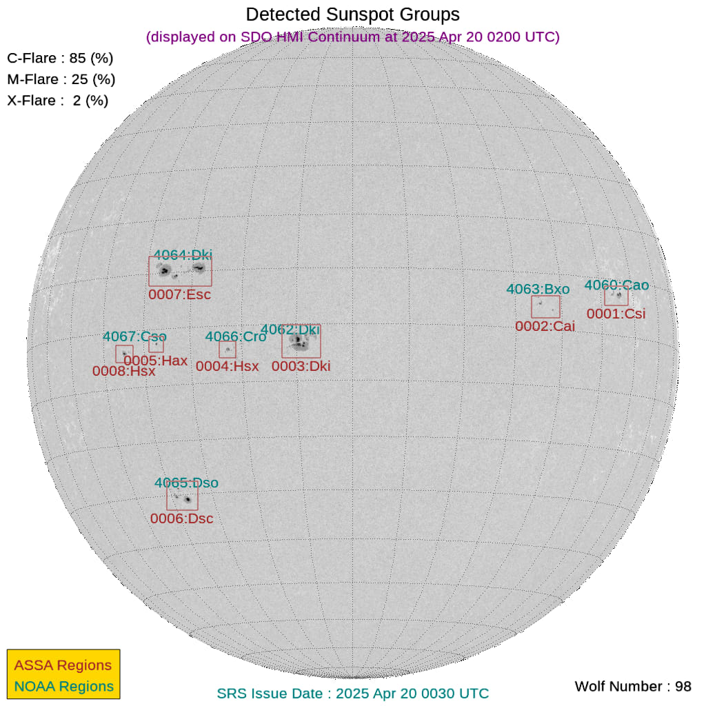 現時点で地球正面の黒点群は[4062, 4066]です。←黒点番号が振られていない活動領域でもフレアは発生しますので、あくまで目安として捉えてください。