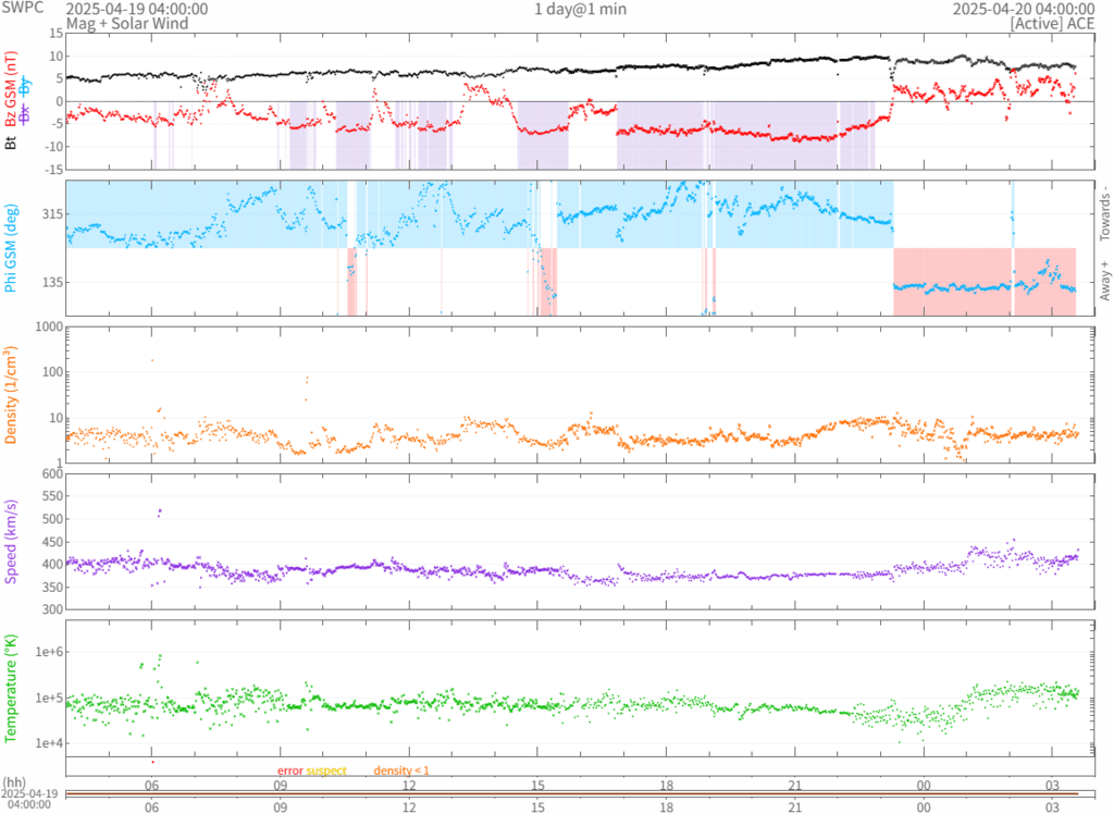 一時370km/s前後まで下がりましたが、現在410km/s前後で推移しています