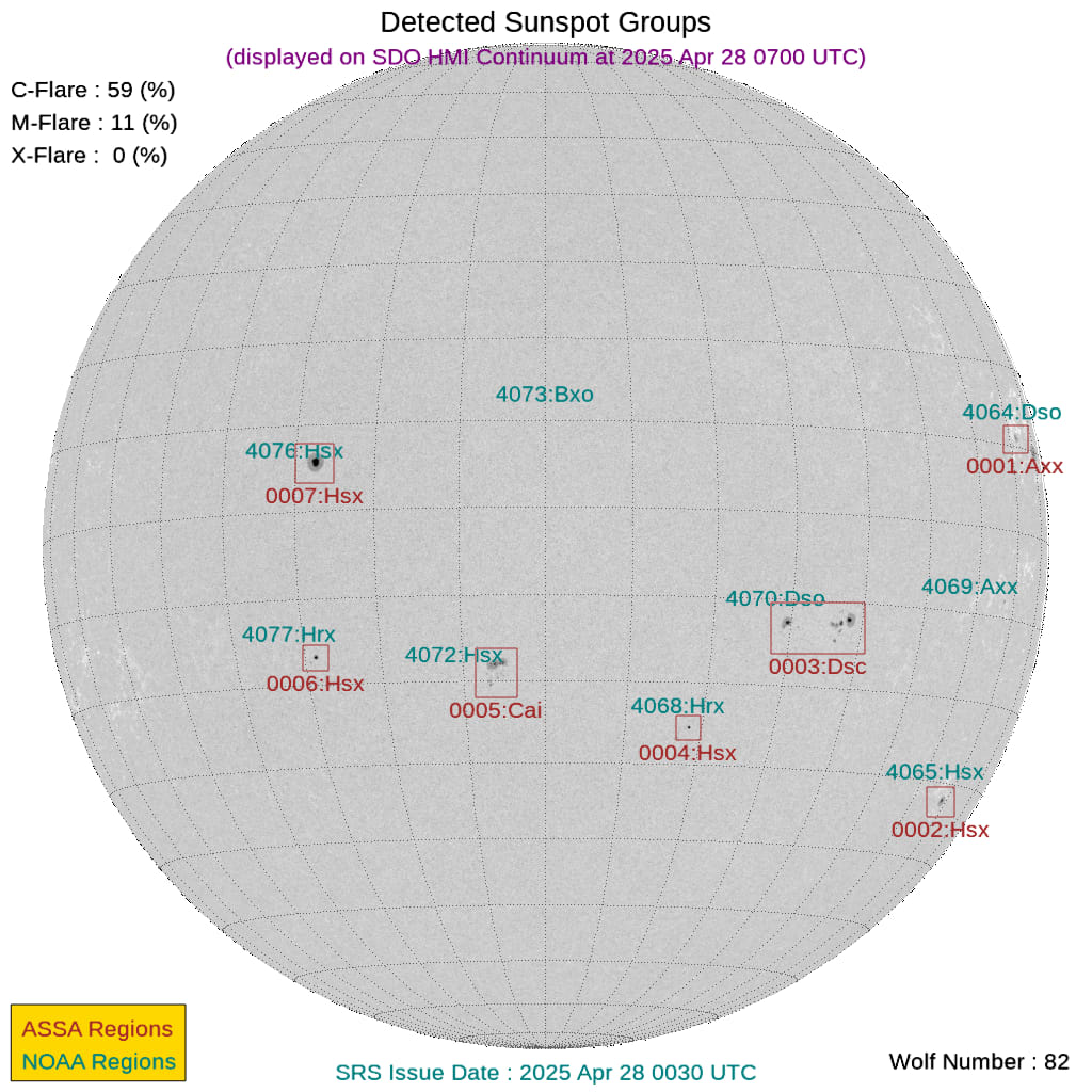 現時点で地球正面の黒点群は[4068, 4072]です。←黒点番号が振られていない活動領域でもフレアは発生しますので、あくまで目安として捉えてください。