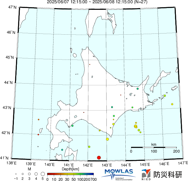 ●Hi-net日本地震分布と気象庁・・・hi-netの小笠原のデータは掲載日がずれて反映されるようです(翌々日に掲載)。掲載されないものもあるようなので気象庁の画像も付けます