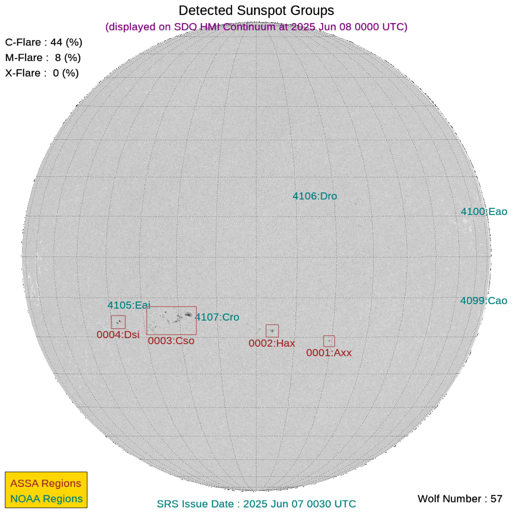 太陽フレアと黒点数(2025年06月08日更新)※CME藤茶億予測あり