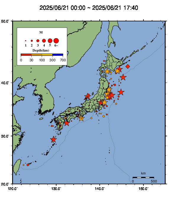●Hi-net日本地震分布と気象庁・・・hi-netの小笠原のデータは掲載日がずれて反映されるようです(翌々日に掲載)。掲載されないものもあるようなので気象庁の画像も付けます