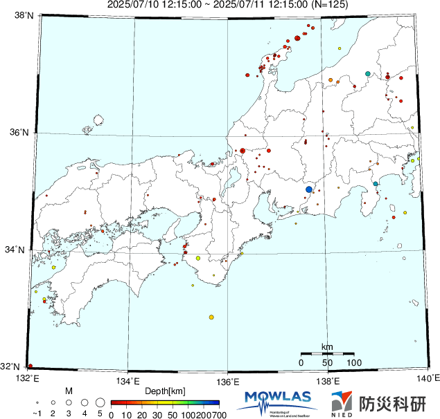 ●Hi-net日本地震分布と気象庁・・・hi-netの小笠原のデータは掲載日がずれて反映されるようです(翌々日に掲載)。掲載されないものもあるようなので気象庁の画像も付けます