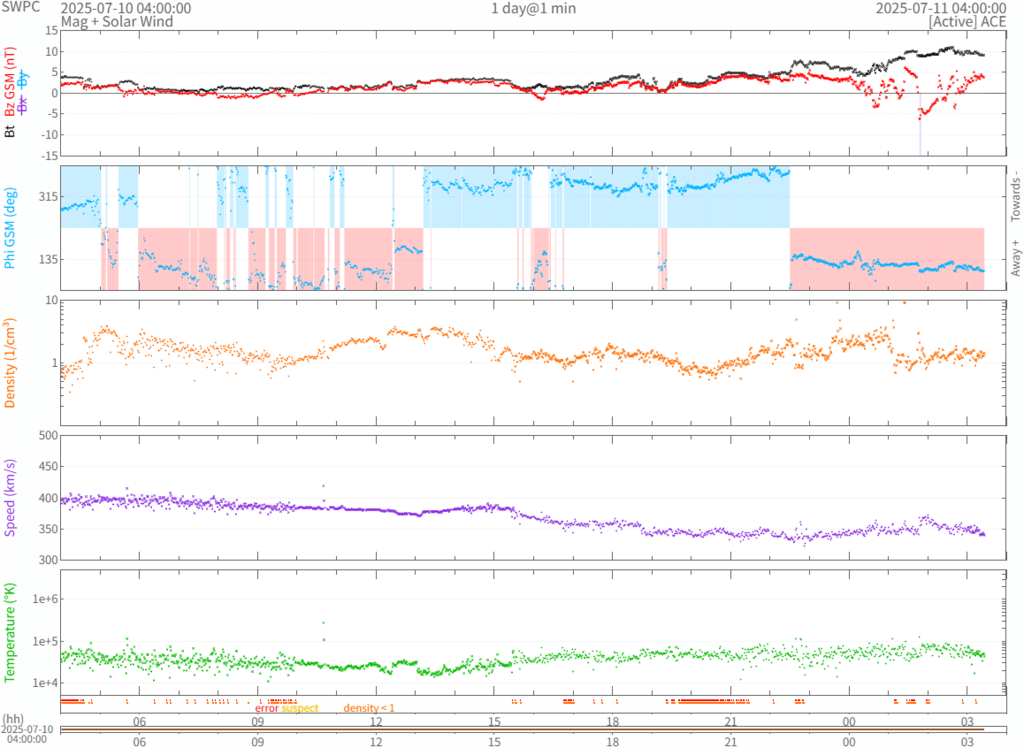 400km/s前後で推移していましたが徐々に下がり、現在350km/s前後で推移しています。