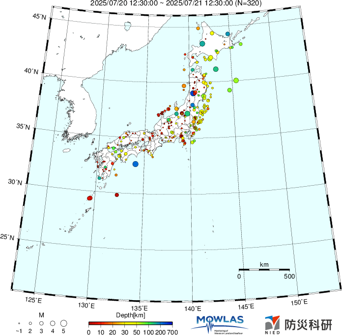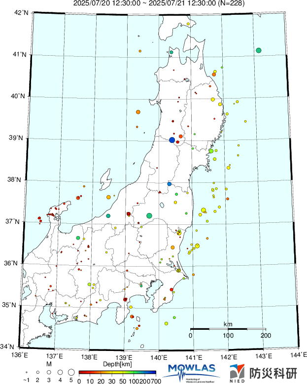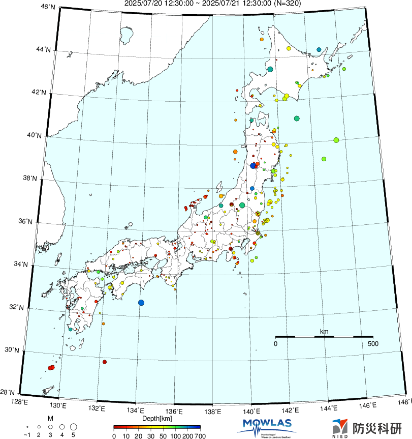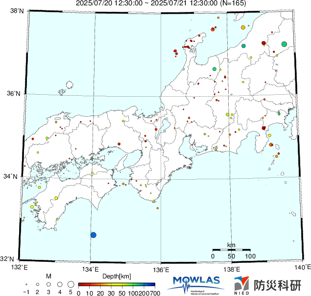 ●Hi-net日本地震分布と気象庁・・・hi-netの小笠原のデータは掲載日がずれて反映されるようです(翌々日に掲載)。掲載されないものもあるようなので気象庁の画像も付けます