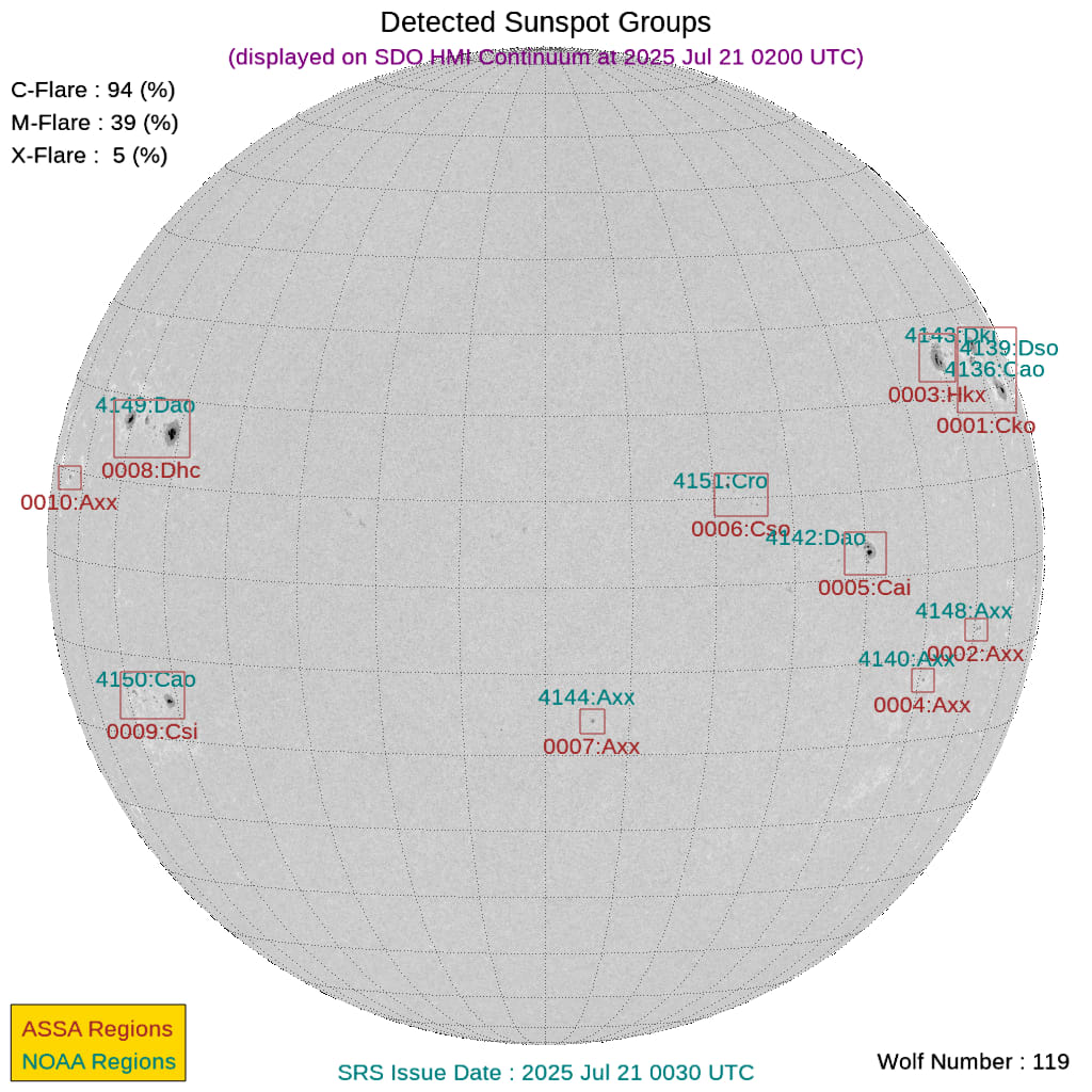 新しい黒点群が2個カウントされました。黒点数は139個です。