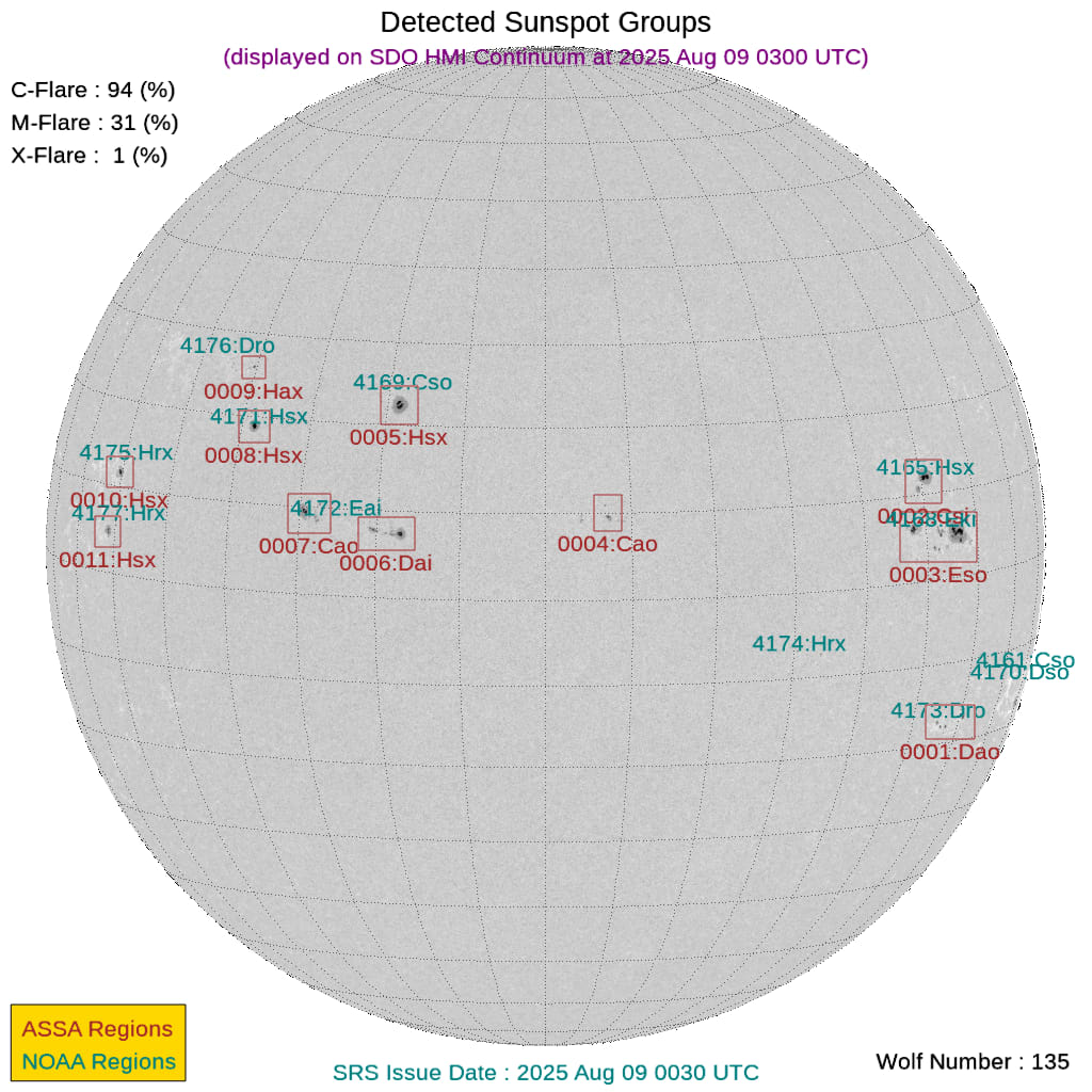 新しい黒点群が3個カウントされました。黒点数は177個です。