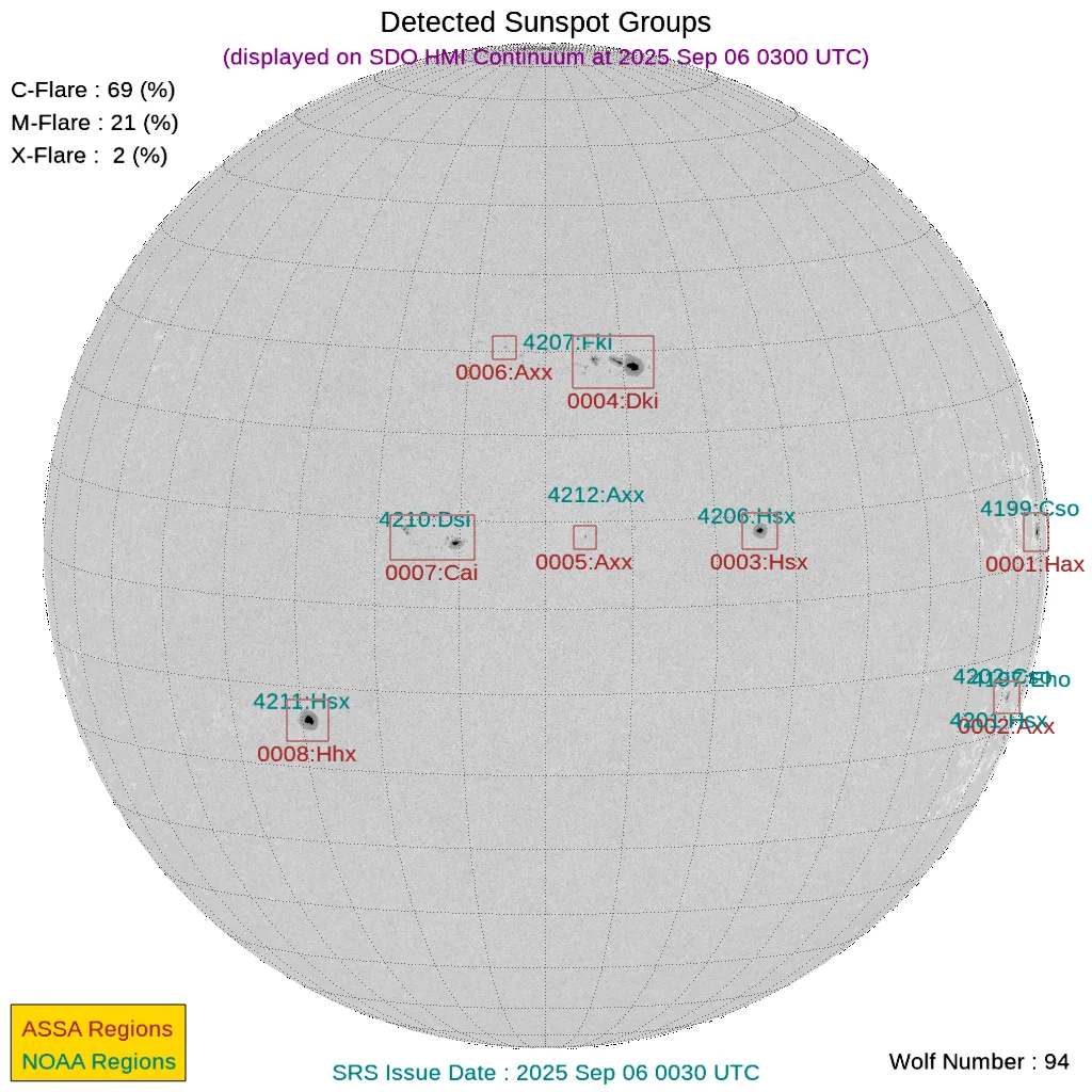 現時点で地球正面の黒点群は[4206, 4207, 4210, 4212]です。←黒点番号が振られていない活動領域でもフレアは発生しますので、あくまで目安として捉えてください。