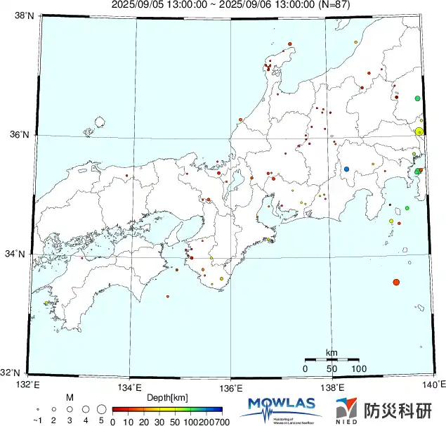 ●Hi-net日本地震分布と気象庁・・・hi-netの小笠原のデータは掲載日がずれて反映されるようです(翌々日に掲載)。掲載されないものもあるようなので気象庁の画像も付けます