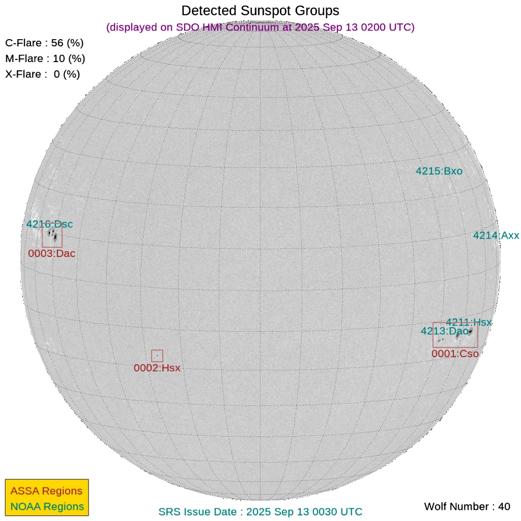 現時点で地球正面の黒点群はありません。←黒点番号が振られていない活動領域でもフレアは発生しますので、あくまで目安として捉えてください。