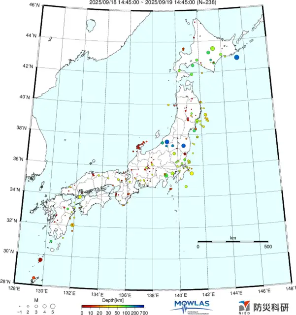 ●Hi-net日本地震分布と気象庁・・・hi-netの小笠原のデータは掲載日がずれて反映されるようです(翌々日に掲載)。掲載されないものもあるようなので気象庁の画像も付けます