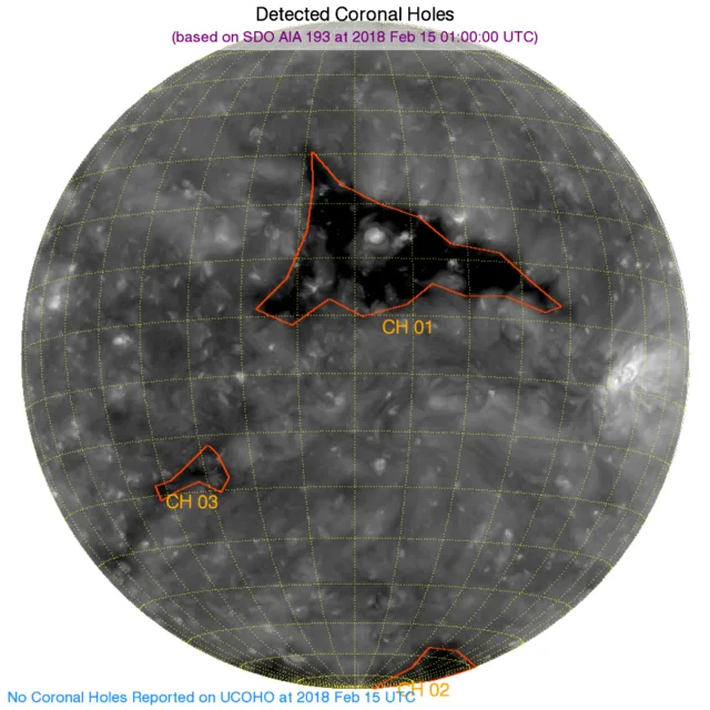 南半球東側に新しく小さなコロナホールがカウントされました。