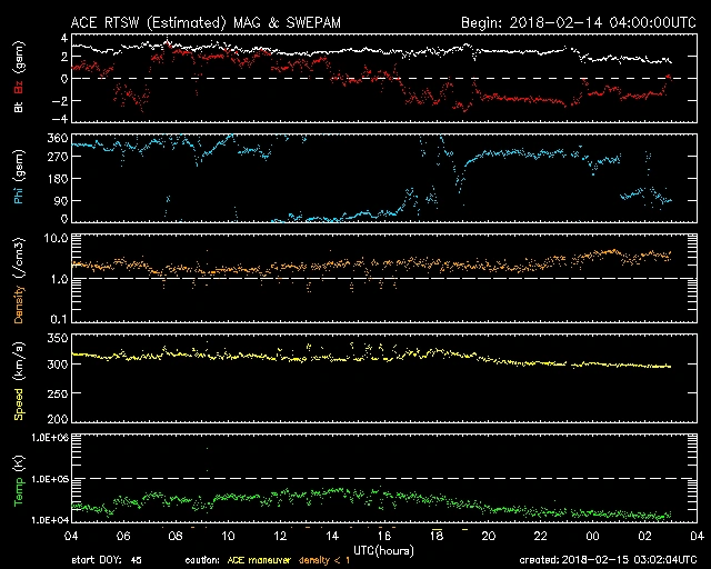 北半球ほぼ正面にコロナホールがあります。やや発達。こちらの影響が明日くらいに届くかも