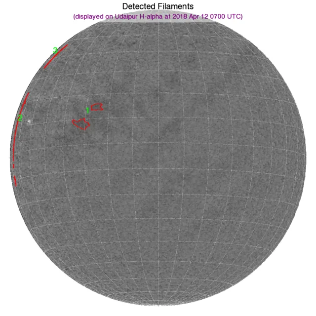 現時点で地球正面の黒点群はありません。←黒点番号が振られていない活動領域でもフレアは発生しますので、あくまで目安として捉えてください。