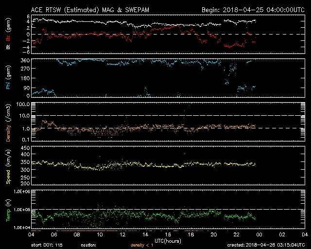 速度は少し下がり、現在は320km/s前後で推移しています。