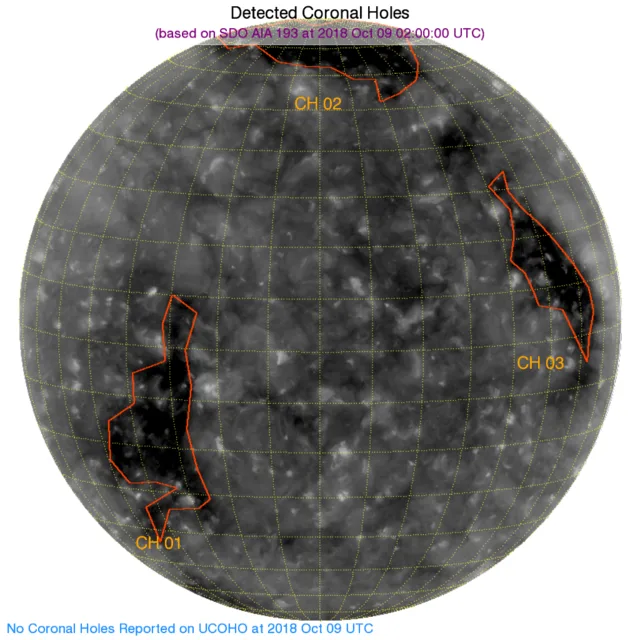 太陽フレアと黒点群(2018年10月09日更新)※無黒点4日目&コロナホール影響下