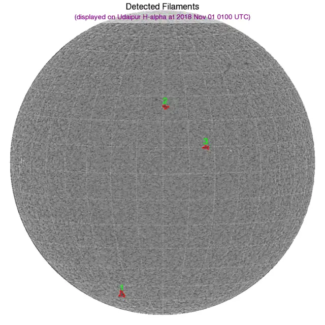 ※フィラメント:正面付近と南の極付近に小さなフィラメントがあります
