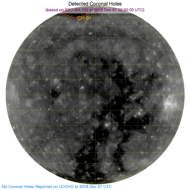 現時点で地球正面の黒点群はありません。←黒点番号が振られていない活動領域でもフレアは発生しますので、あくまで目安として捉えてください。