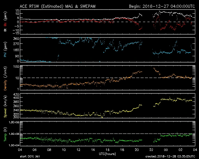 速度は少し上がり、380km/s前後で推移しています。ここ数分の間に速度が430km/s前後に上がりました。