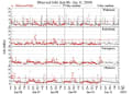 370km/s前後で推移していましたが8時くらいから上がり始め、現在500km/s前後で推移しています。