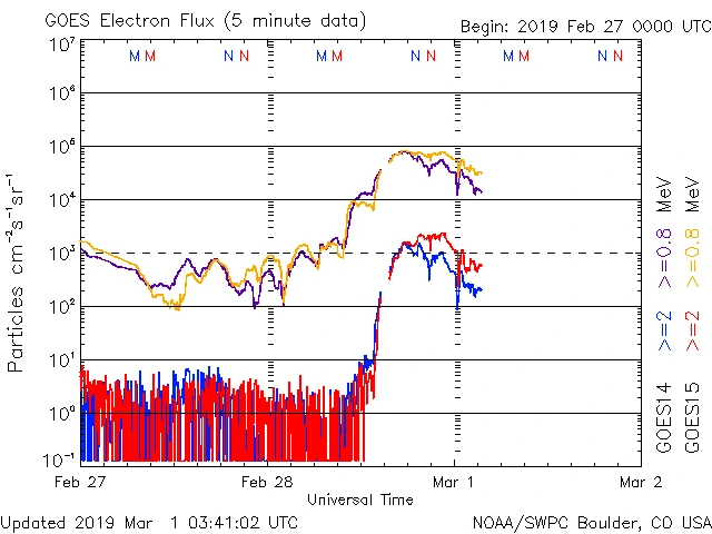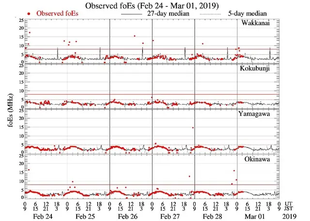 02/28 20時(UT)頃、24時(UT)頃にピンポイントの反応があり、レベルが上がっています。
