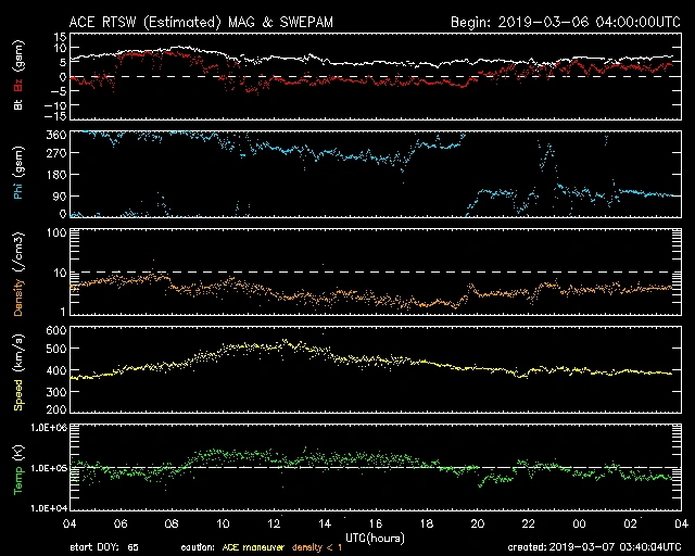 一時500km/s前後まで上がりましたが速度は少し下がり、現在380km/s前後で推移しています。