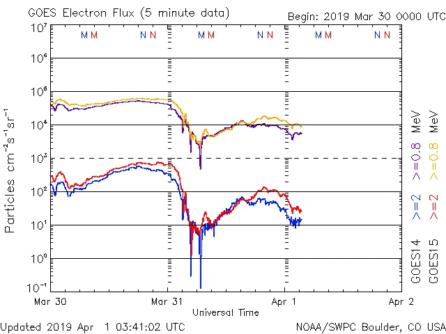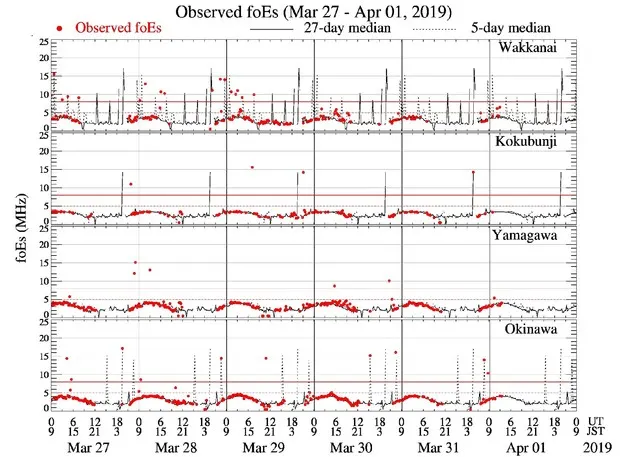 03/31 05時、07時(UT)くらいにピンポイントの反応がありました。レベルは下降。