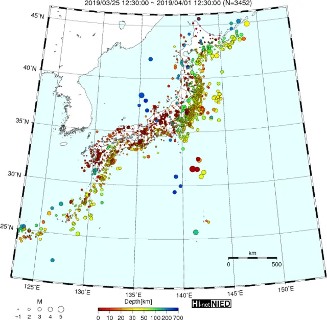 ●Hi-net日本地震分布(過去24時間)・・・小笠原のデータは掲載日がずれて反映されるようです(翌々日に掲載)