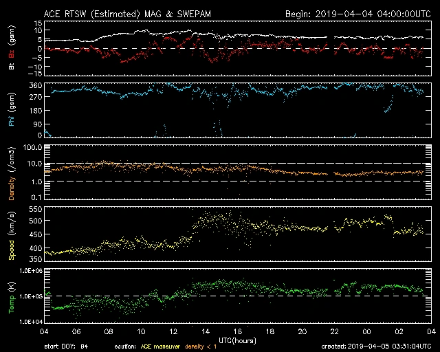 昨晩22時頃から速度が一段上がり500km/s前後に達しました。現在は少し下がって470km/s前後で推移しています。