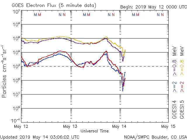 滑らかなラインではありません。05/14 01時(UT)頃にピンポイントの反応が出ています。