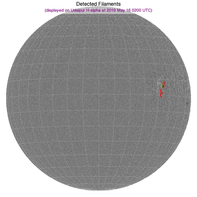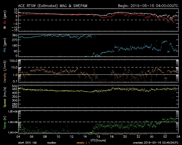 14日に発生したフィラメントの噴出によるCMEですが、早ければ05/15 11時くらい頃に到着するかも。(遅い予想だと05/18 9時くらい)