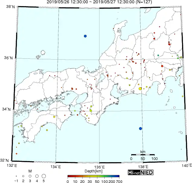 ●Hi-net日本地震分布(過去24時間)・・・小笠原のデータは掲載日がずれて反映されるようです(翌々日に掲載)
