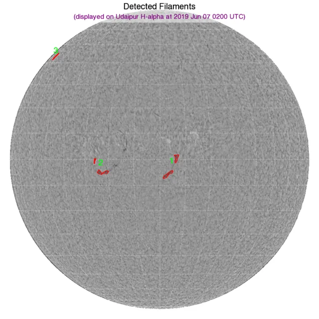 ※フィラメント:正面付近、赤道付近東寄り、北半球東端に小さなフィラメントがあります