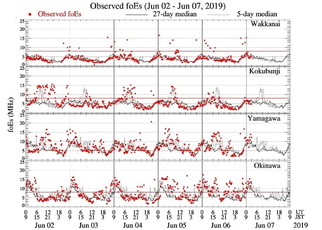 06/07 03時(UT)前から乱れの兆候があります。この後乱れや反応が出たらご注意ください