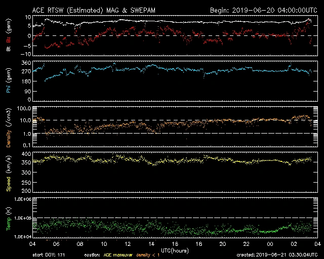 一時380km/s前後まで上がりましたが、引き続き360km/s前後で推移しています。