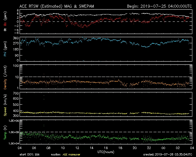 一時600km/sを超える突風が吹いたようです。速度は350km/s前後で推移しています