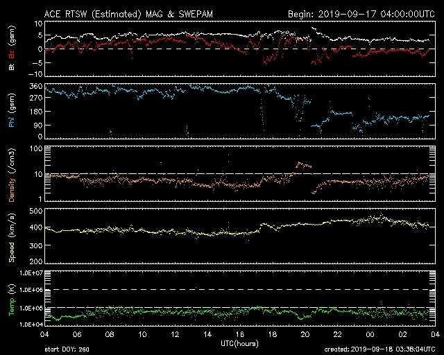 09/18 02時(UT)くらいからやや乱れの兆候があります。この後乱れが出るようなら要注意。