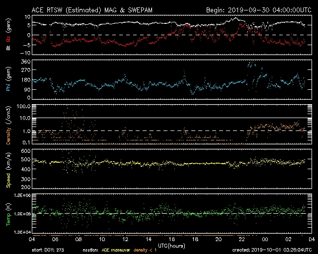 時折600mk/sを超える突風が吹いていますが、引き続き480km/s前後で推移しています