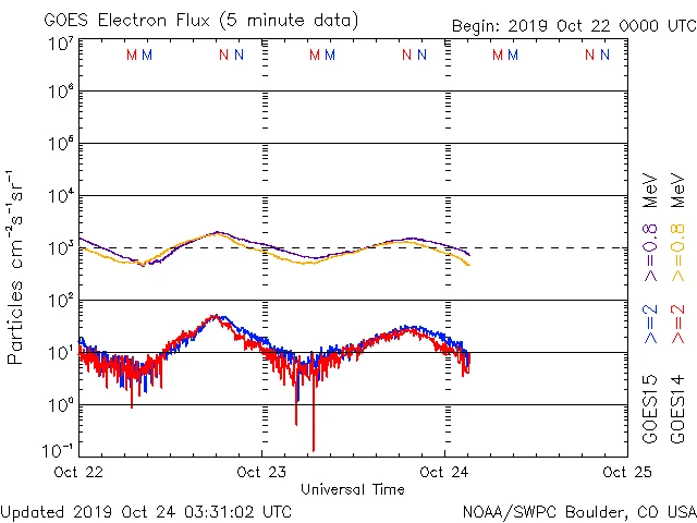 X線チャートのレベルは、前日と同等で低い状態です。フレアは発生していません。