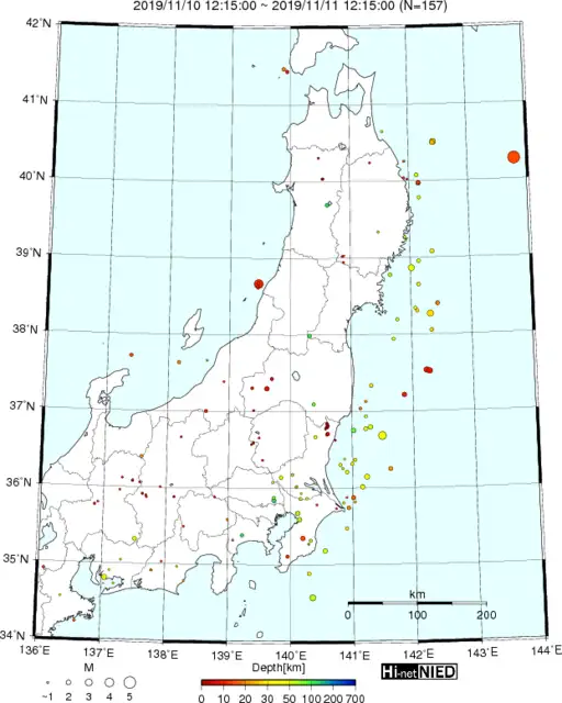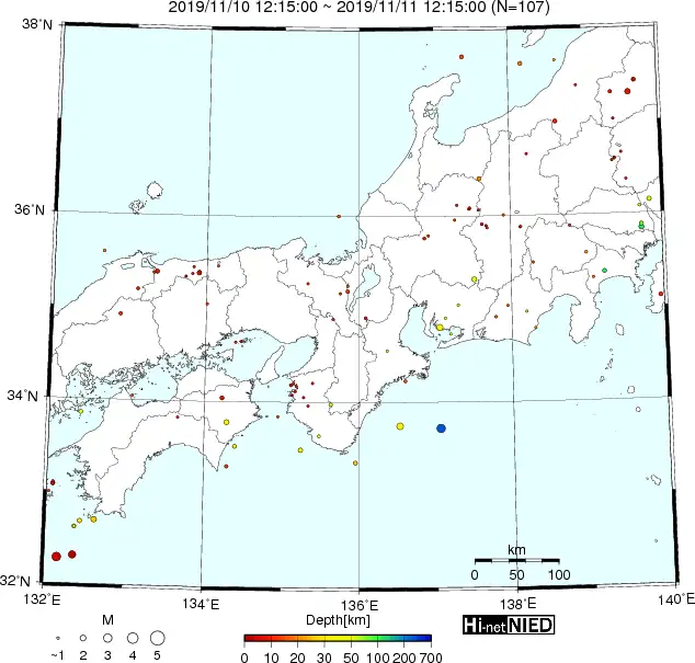 ●Hi-net日本地震分布(過去24時間)・・・小笠原のデータは掲載日がずれて反映されるようです(翌々日に掲載)
