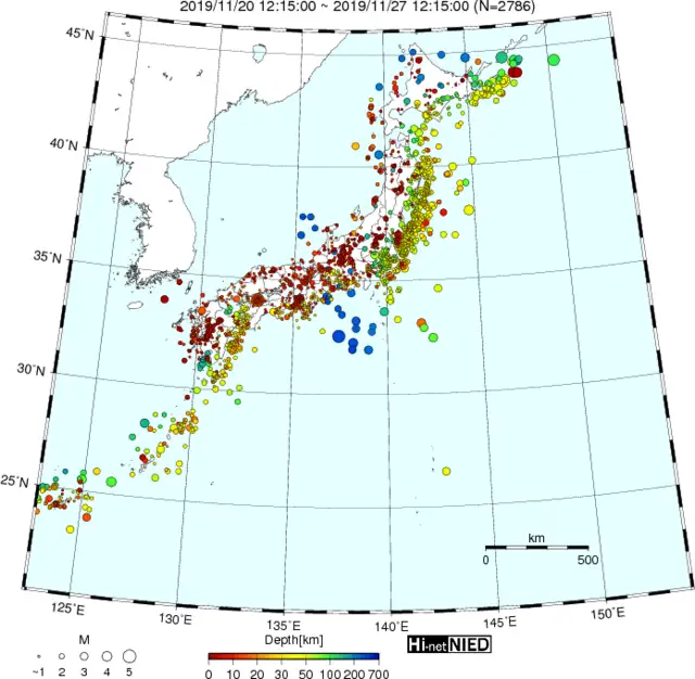 ●Hi-net日本地震分布(過去24時間)・・・小笠原のデータは掲載日がずれて反映されるようです(翌々日に掲載)
