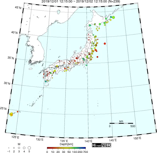 ●Hi-net日本地震分布(過去24時間)・・・小笠原のデータは掲載日がずれて反映されるようです(翌々日に掲載)