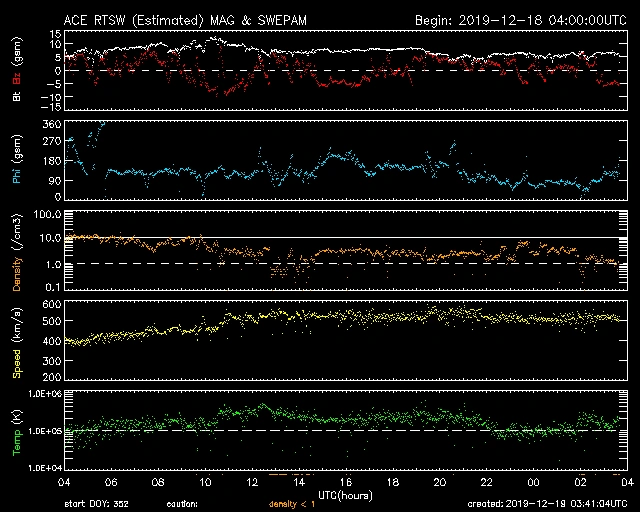 400km/s前後で推移していましたが徐々に上がり、一時560km/sに達しました。
