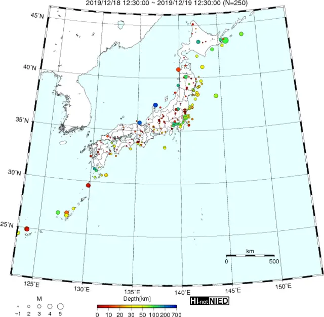 ●Hi-net日本地震分布(過去24時間)・・・小笠原のデータは掲載日がずれて反映されるようです(翌々日に掲載)